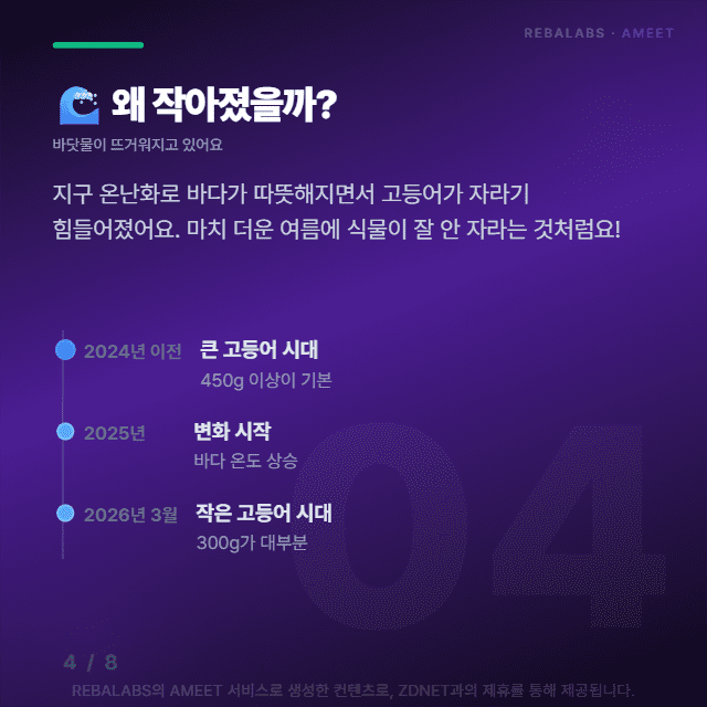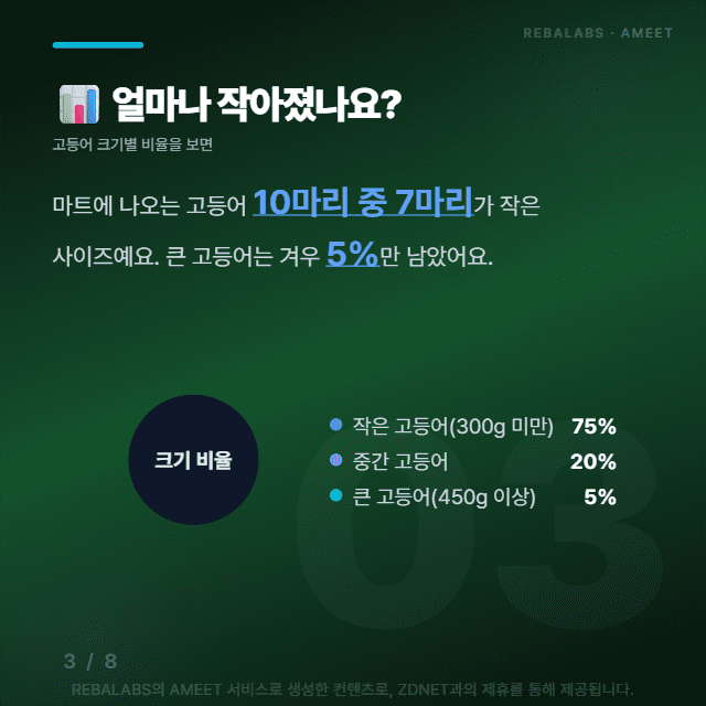 요즘 마트에서 고등어를 사다 보면 ‘어? 예전보다 작은 것 같은데?’ 하는 생각, 한 번쯤 해보셨을 거예요.
