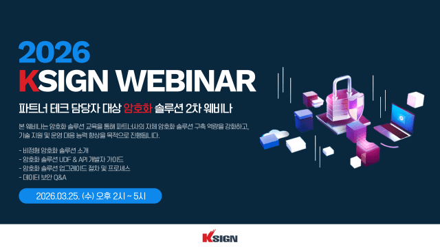 정보보안 전문기업 케이사인(대표 구자동·최현철)은 ‘2026 케이사인 파트너 테크 담당자 대상 암호화 솔루션 2차 웨비나’를 25일 오후 2시~5시 개최한다고 밝혔다.
