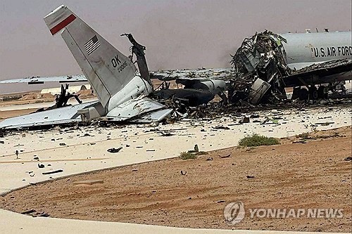 이란 공격에 파괴된 미군 AWACS E-3센트리[UGC/AFP=연합뉴스 자료사진 제공][UGC/AFP=연합뉴스 자료사진 제공]