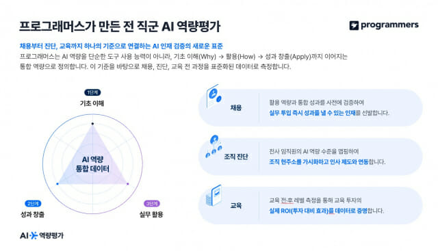 개발자 역량 성장 플랫폼 프로그래머스를 운영하는 그렙(대표 임성수)이 기업의 AI 전환을 지원하는 ‘AI 역량평가’ 서비스를 정식 출시했다고 31일 밝혔다. 응시자의 AI 활용 결과와 문제 해결 과정을 함께 평가하는 구조로, 프롬프트 설계·검증·보완·성과 연결 역량을 다면적으로 진단하는 국내 최초의 프로세스 분석 방식을 적용했다.