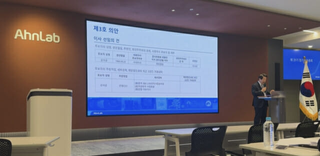 한편 강 대표는 이날 주주총회 인사말을 통해 “지난해 안랩은 글로벌 사업 확장을 통해 글로벌 통합 보안 기업으로 자리를 잡았으며, 다양한 솔루션과 서비스 영역에서 고른 성장을 이뤄냈다”며 “그 결과 전년 동기 대비 매출과 영업이익이 모두 증가하는 성과를 달성했다. 안랩은 빠르게 변화하는 인공지능(AI) 대전환 시대와 고객의 요구에 선제적으로 대응하고 중장기 미래를 준비하기 위해 ‘액셀러레이트 안랩’이라는 경영 방침 아래 AI 주요 제품과 서비스, 업무 방식의 변화를 계속해 나갈 계획”이라고 밝혔다.