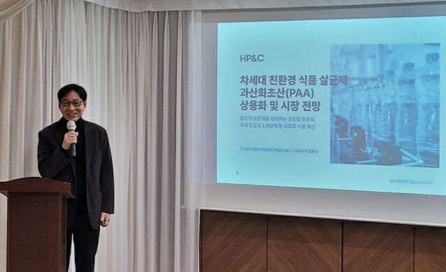 HP&C는 31일 ‘페라스타’ 간담회를 갖고 최근 식품의약품안전처가 식품용 살균제 현장 가이드라인 개정에 따라 과산화초산(PAA)이 차아염소산나트륨계를 대체할 차세대 친환경 식품 살균제로 주목받고 있다고 밝혔다.