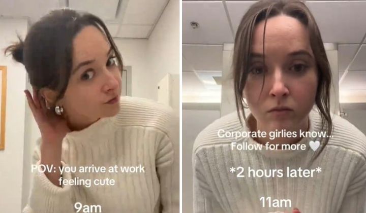 26일(현지시각) 미 피플 등 외신에 따르면 직장인 노아 돈란은 자신의 사회관계망서비스(SNS)에 “아침에 회사에 도착했을 때는 분명 예뻐 보였는데 몇 시간만 지나면 외모가 크게 달라진다”며 출근 직후와 출근 후 2시간이 지난 모습을 비교한 영상을 올렸다.