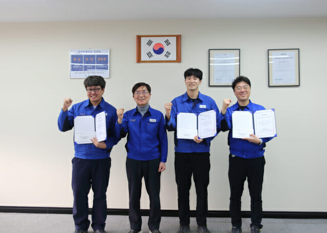 1일 성낙곤 한세모빌리티 대표(왼쪽에서 두 번째)가 AI 아이디어 경진대회에서 우수한 아이디어를 제안한 임직원들에게 상금 및 표창을 수여했다 (사지=한세모빌리티)