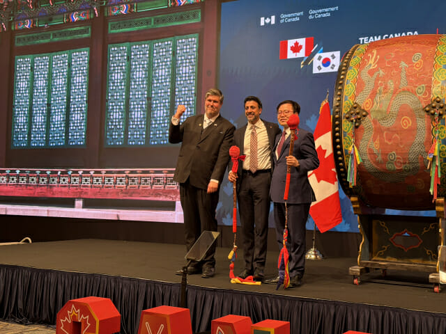 그는 양국 간 교역 규모가 지난 11년 동안 두 배로 늘었다고 말했다. 현재 상품과 서비스 교역액이 250억 달러를 넘었으며, 한국 기업의 캐나다 투자 규모도 10년 전보다 약 3배로 증가했다는 설명이다.