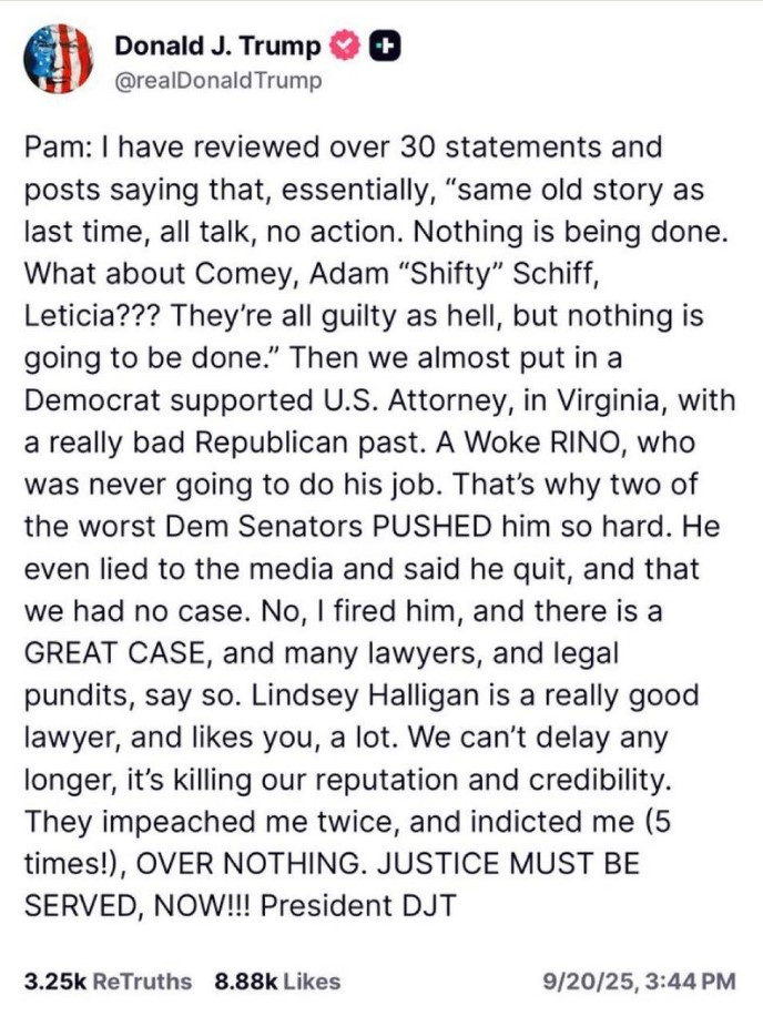 이를 계기로 엡스틴 관련 자료 처리 과정에서 수사에 소극적이라는 논란에 휩싸였으며, 트럼프 대통령은 법무부의 기소 건수 부족에 대한 불만을 담은 소셜 미디어 게시물을 올렸다 삭제하기도 했습니다.