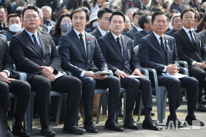 이날 추념식에는 김민석 국무총리와 우원식 국회의장, 정청래 더불어민주당 대표, 장동혁 국민의힘 대표, 조국 조국혁신당 대표, 오영훈 제주도지사, 생존 희생자·유족 등이 참석했다.