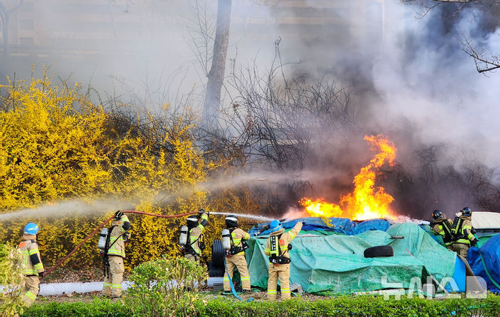 잠실 한강공원서 화재 발생해 진화 중…인명 피해 없어