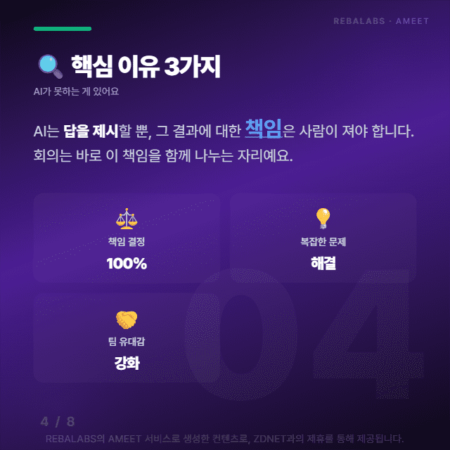 결국 AI 시대의 회의는 정보가 아닌 신뢰와 합의를 만드는 자리랍니다. 여러분의 회의실도 이제 변화가 필요한 시점 아닐까요?