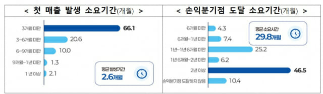 기업당 평균 매출액 2억6640만원, 당기순이익은 3620만원이고, 평균 창업 준비기간은 13.1개월이였다. 또 대표자 연령은 평균 55.1세, 성별은 남성 70.7%로 조사됐다. 창업 후 첫 매출 발생기간은 평균 2.6개월이였다.