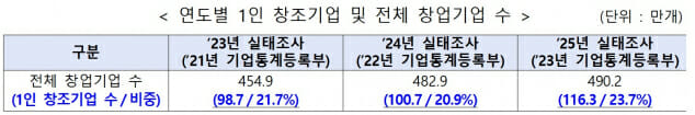 6일 중소벤처기업부(중기부)는 이 같은 내용의 ‘2025년 1인 창조기업 실태조사 결과’를 발표했다.