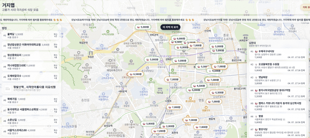 거지맵은 음식 가격이 1만원 이하인 가성비 식당을 모아 둔 사이트로, 이용자들이 직접 저렴한 식당 정보를 등록하고 후기를 남기는 방식으로 운영되고 있다. 거지맵에 접속해보면 식당별 판매단가가 아이콘으로 표시되고, 이를 누르면 이름과 함께 음식 카테고리, 메뉴, 추천 이유 등을 볼 수 있으며 댓글을 통해 음식점에 대한 의견도 남길 수 있다.