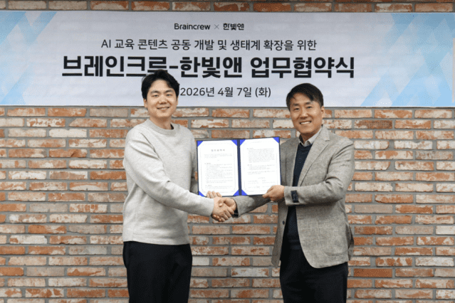 이경록 브레인크루 대표는 “이번 협약은 AI 기술을 보다 쉽게 이해하고 활용할 수 있도록 돕는 콘텐츠를 확산하는 중요한 계기가 될 것”이라며 “한빛앤과의 협력을 통해 실무 중심의 AI 교육 콘텐츠를 지속적으로 선보이겠다”고 밝혔다.
