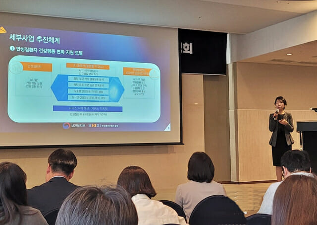 연미영 한국보건산업진흥원 팀장이 9일 만성질환자 대상 보건의료 전주기 인공지능 전환(AX) 사업에 대해 설명하고 있다