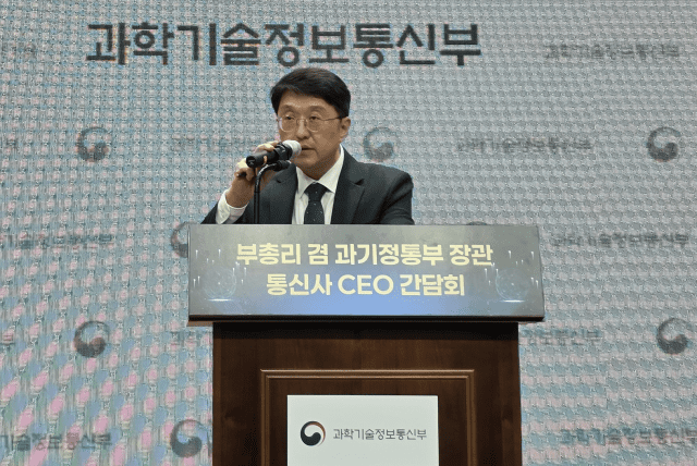 최우혁 과학기술정보통신부 정보보호네트워크정책실장은 9일 배경훈 부총리와 통신 3사 CEO 간담회 백브리핑에서 “부총리는 AI 고속도로 완성을 위한 핵심 인프라인 차세대 지능형 네트워크 등 통신 분야 투자를 확대할 것을 당부했다”고 밝혔다.