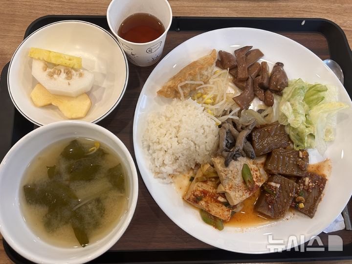이날 메뉴로 나온 느타리버섯 볶음과 두부조림, 사찰식 만두를 비운 학생들은 후식으로 제공된 과일과 보이차를 즐기며 잠시나마 여유를 만끽했다.