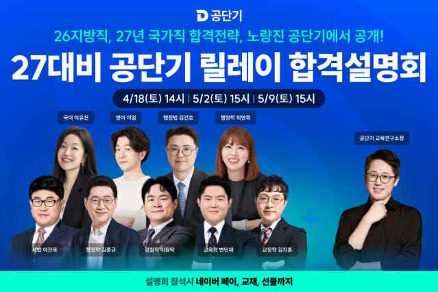 설명회는 총 3회에 걸쳐 수험생에게 필요한 핵심 정보를 세분화해 제공한다. 먼저 오는 18일에는 일반행정, 교육행정, 공안 등 주요 직렬 수험생을 대상으로 전공과목 선생님이 직렬별 공부법을 제시한다. 또 2026년 국가직 시험 분석 데이터를 기반으로 공단기 연구소의 풀서비스 분석 결과를 바탕으로 최신 출제 경향을 반영한 학습 전략을 제시한다.