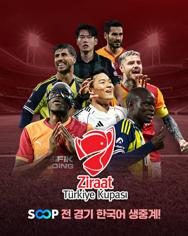 튀르키예 쿠파스는 갈라타사라이, 페네르바체, 베식타시 등 튀르키예를 대표하는 명문 구단들이 참가하는 컵 대회로, 유럽 축구 팬들에게도 꾸준히 주목받고 있는 대회다. SOOP은 이번 시즌 본선 전경기를 제공하며 해외 스포츠 콘텐츠 라인업을 확대한다.