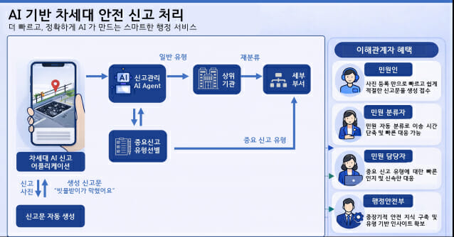 이번 실증 단계에서는 차세대 AI 신고 애플리케이션을 개발해 사진 기반 신고문 자동 생성 모델을 연동하고, 이송 분류 고도화를 지원하는 신고관리 AI 에이전트를 개발해 안전신문고 시스템에 단계적으로 적용한다.