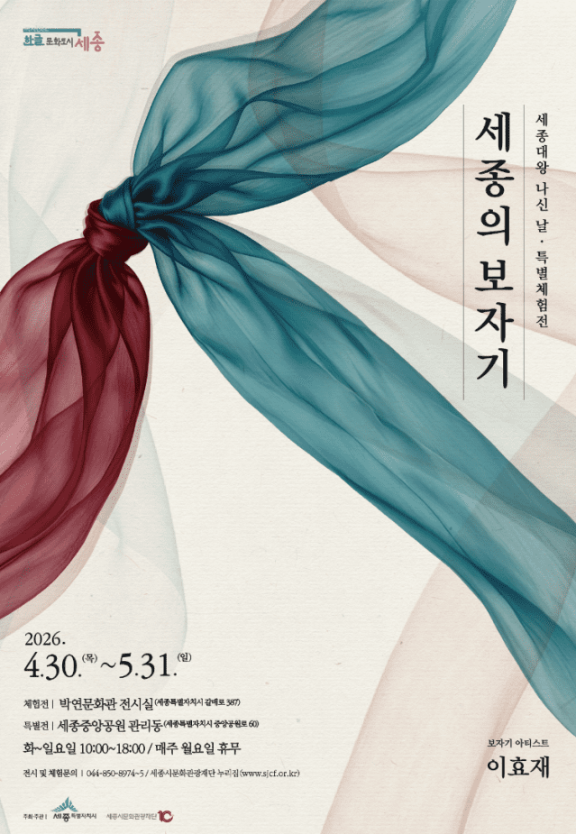 양유정 세종시문화관광재단 한글문화도시센터장은 “이번 전시는 전통 보자기를 통해 세종대왕의 정신을 보다 쉽고 친근하게 체험할 수 있도록 기획했다”며 “가정의 달을 맞아 가족 단위 관람객이 함께 참여하고 공감할 수 있는 문화예술 프로그램이 되길 바란다”고 밝혔다.