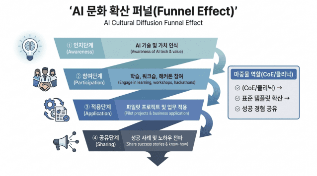 <그림1> AI 문화 확산을 위한 퍼널 효과(Funnel Effect) 적용 단계