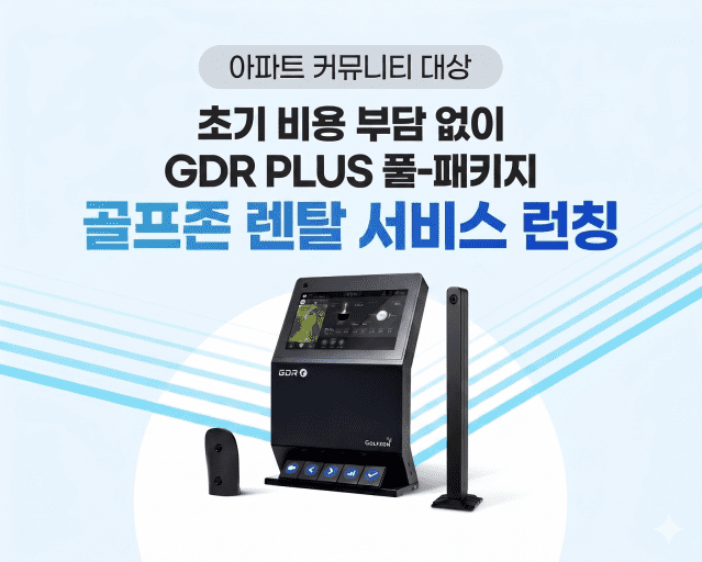 ‘골프존 비영리 아파트 커뮤니티 전용 렌탈 서비스’는 아파트 입주단지를 대상으로 골프존이 새롭게 선보이는 장비 렌탈 사업이며, 월 이용료 방식으로 골프 연습 시뮬레이터 GDR PLUS를 설치, 운영할 수 있는 서비스다. 아파트 및 주거단지 입주민 커뮤니티 시설을 중심으로 선보일 예정이며, 장비 공급부터 설치 및 유지보수까지 통합 운영 서비스를 제공하는 것이 특징이다.