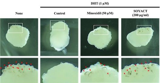 연구팀은 남성형 탈모의 주요 원인 물질인 디하이드로테스토스테론(DHT·남성호르몬의 활성형)을 오가노이드에 처리해 탈모 환경을 인위적으로 구현했다.