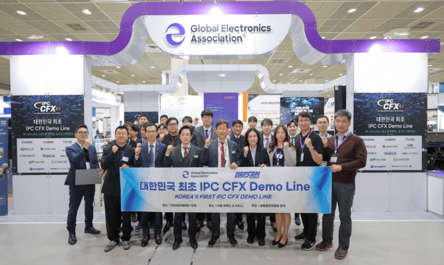 글로벌전자협회는 이달 초순 서울 강남 코엑스에서 열린 ‘한국전자제조산업전'(EMK x NEPCON KOREA)에서 13개 기업과 IPC CFX(Connected Factory Exchange) 데모라인을 전시했다. 해당 데모라인은 IPC-2591 CFX 표준을 기반으로 실제 장비를 통합해 생산 과정 전반의 데이터 수집, 전송, 활용 등을 구현했다.