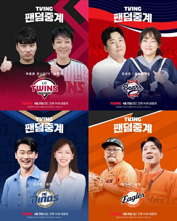 티빙, KBO 4월 4주차 팬덤중계 라인업 공개
