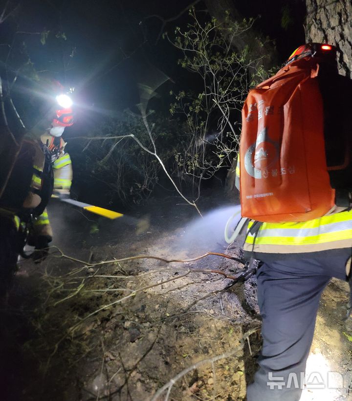 [봉화=뉴시스]안병철 기자 = 경북 봉화 한 야산에서 불이 나 1시간여 만에 꺼졌다.