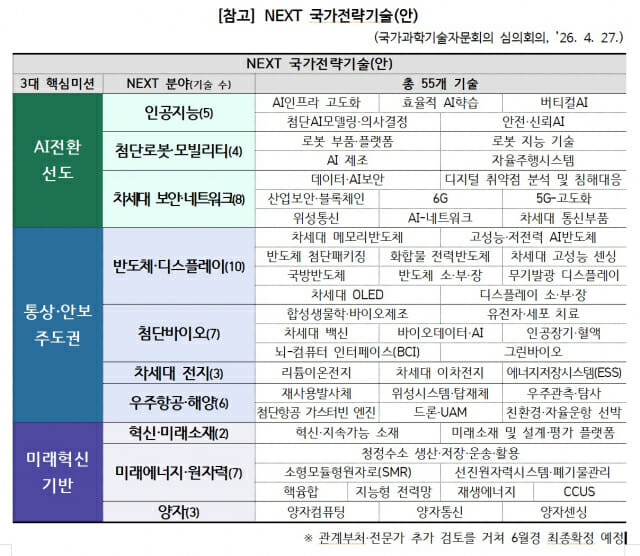 정부는 이를 위해 총 55개 기술에 대한 ‘넥스트 국가전략기술(안)’을 도출하고, 최신 동향을 대폭 보강했다.