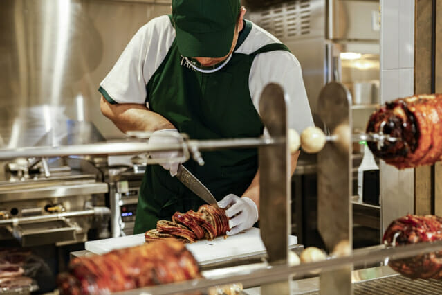 가장 눈에 띄는 공간은 바베큐 특화 코너인 ‘테이크 그릴’이다. 식재료를 꼬치에 꽂아 천천히 돌려가며 구워내는 로티세리 방식으로 요리가 완성되는 과정을 고객이 실시간으로 지켜볼 수 있다.